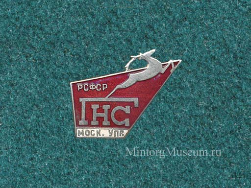 Главнефтеснаб РСФСР Московское управление Значок на заколке. Сложно сказать, что красная эмаль соответствует исторической правде и не переложена вместо голубой, но подтвердить или опровергнуть это мы не можем, поэтому рассматриваем этот значок, как вариант привычного - голубого. Главное управление по транспорту и снабжению нефтью и нефтепродуктами (Главнефтеснаб) при Совете Министров РСФСР).