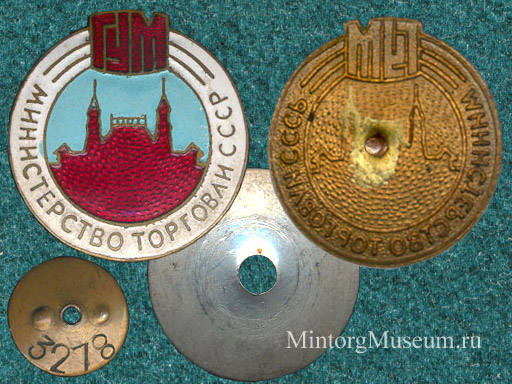 Значок в обязательном порядке укомплектовывался прижимной пластиной и характерной гайкой (мутором) с номером значка. Номер значка проставлялся на гайке, что иной раз использовалось в нагрудных знаках Торговых работников. Этот значок являлся частью оформительских мероприятий, подготовленных у открытию магазина. Также можно посмотреть первые путеводители, выпущенные в 1953 и в 1954 годах. Кабинеты оформлялись особыми дверными ручками и красивыми ключами.