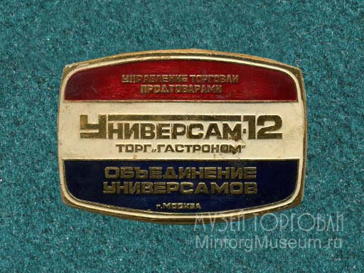 Универсам №12. Торг "Гастроном". Управление торговли продтоварами г. Москвы Объединение универсамов Ещё значок этого же универсама |