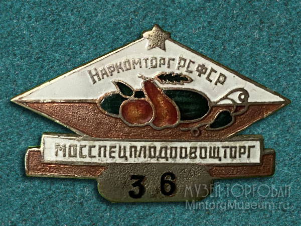 Мосспецплодоовощторг Наркомторг РСФСР Эмаль восстановлена. Жаль, конечно, но такой значок никогда не встречался. Мосплодоовощторг Министерства торговли РСФСР http://www.mintorgmuseum.ru/trade/badges/3429/