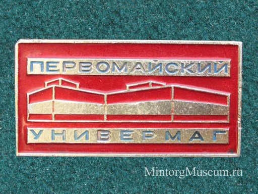 Универмаг "Первомайский" г. Москва, 9-я Парковая ул., 62/64. Универмаг являлся одним из самых крупных торговых предприятий самообслуживания в Москве. Открыт в 1969 году. Размещен в двухэтажном здании, построенном по индивидуальному проекту. Общая площадь 29 тысяч кв. м., площадь торгового зала 10 тысяч кв. м. В день совершалось до 100 тысяч покупок. Товарооборот в 1979 году составил свыше 216 миллионов рублей. Основной ассортимент: ткани, швейные и грикотажные изделия, обувь, бытовая химия, парфюмерия и косметика, ковры, часы, спорт-, радио-, фото-, кинотовары, посуда, сувениры и т.д. Также был продовольственный отдел. |