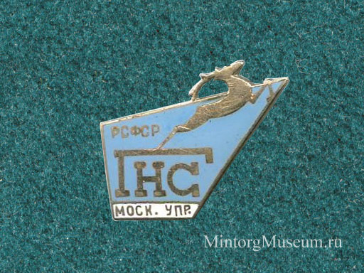 Главнефтеснаб РСФСР Московское управление Значок на заколке. Главное управление по транспорту и снабжению нефтью и нефтепродуктами (Главнефтеснаб) при Совете Министров РСФСР). 5 февраля 1958 г. при Госплане РСФСР на базе упраздненных главных управлений материально-технического снабжения строительства предприятий нефтяной промышленности (Главнефтестройснаб) и материально-технического снабжения предприятий нефтяной промышленности (Главтехснабнефть) было образовано Главное управление по снабжению и сбыту нефти и нефтепродуктов (Росглавнефтеснабсбыт). Ему были переданы от Госплана СССР областные товарно-транспортные управления, нефтепроводные управления, Всесоюзная контора по регенерации отработанных и нефтяных масел ("Реготмас") и союзный трест опытно-промышленного производства "Нефтемаслозаводы", преобразованный затем в республиканский. В задачи Главного управления входило снабжение предприятий нефтяной промышленности необходимым сырьем и материалами и сбыт продукции внутри страны и за границей.