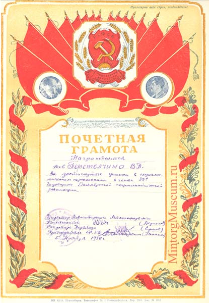 Почётная грамота Новосибирского Мясоконсервного комбината