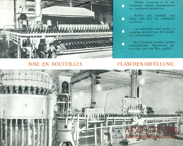 Информационный буклет "Ленинградский пивоваренный завод им. Степана Разина" подготовлен Ленинградским советом народного хозяйства, Управлением пищевой промышленности, т.е. в период с 1957 до 1965 годов. Буклет рассказывет о технологии изготовления продукции пивоваренного завода от производства солода до розлива готовой продукции. Ленинградский пивоваренный завод им. Степана Разина основан в 1795 году и данном издании представлено редкое изображение этого производства именно на 1795 год. Нагрудный знак советского периода можно увидеть на этой странице музея. |