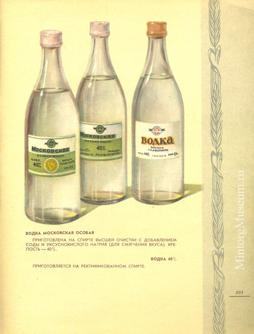 Каталог рассказывает о продукции, выпускавшейся к середине 50-хх годов ХХ века в СССР, где ликеро-водочная промышленность СССР вырабатывала разнообразные ликеры, кремы, наливки, настойки и водки по единой рецептуре, составленной на основе научных исследований и химико-аналитических показателей сырья, полуфабрикатов и готовых изделий. Всю продукцию приготовляли на натуральном растительном сырье.