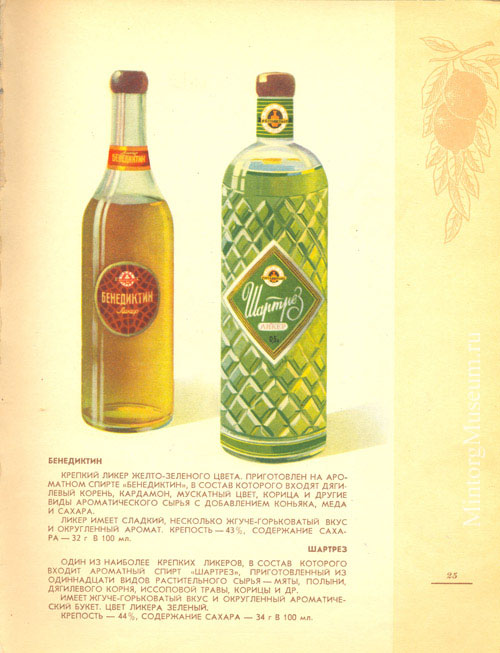 Каталог рассказывает о продукции, выпускавшейся к середине 50-хх годов ХХ века в СССР, где ликеро-водочная промышленность СССР вырабатывала разнообразные ликеры, кремы, наливки, настойки и водки по единой рецептуре, составленной на основе научных исследований и химико-аналитических показателей сырья, полуфабрикатов и готовых изделий. Всю продукцию приготовляли на натуральном растительном сырье.