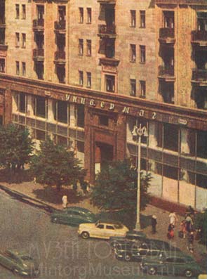 Универмаг - крупный магазин, привлекающий внимание советских граждан и больших городов и приезжих, которые были наслышаны и чаще всего стремились посетить в Столице универмаги в первую очередь, в памятники архитектуры и музеи во вторую. А что было делать? Да и москвичи с удовольствием устремлялись в длинные очереди за дефицитным "выкинутым" на прилавки товаром.
