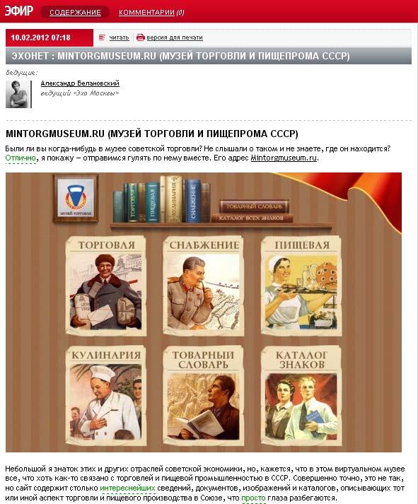Как говорится, пользуясь случаем благодарим ведущего радиостанции "Эхо Москвы" Александра Белановского за любезное упоминание.