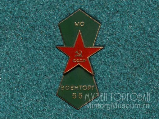 Военторг 55 Министерство обороны Cмысл цифры "55" непонятен. Предположительно значок может быть или 1955 или 1973 года. Или это номер магазина военторга, что скорее всего.