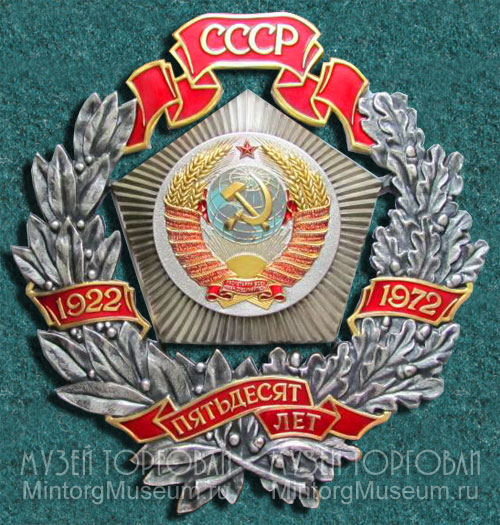 Юбилейный почётный знак, утверждён постановлением ЦК КПСС, Президиума Верховного Совета СССР, Совета Министров СССР и ВЦСПС в ознаменование 50-летия образования Союза Советских Социалистических Республик в 1972 году. Юбилейным почётным знаком награждались коллективы предприятий, колхозов, организаций и учреждений, добившиеся наивысших результатов во Всесоюзном социалистическом соревновании за достойную встречу 50-летия СССР. |