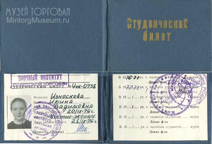 Студенческий билет Заочного Института Советской Торговли (ЗИСТ) 1976 год