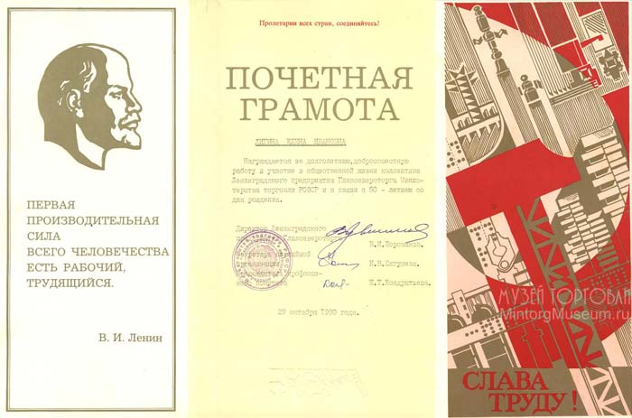 Почётная грамота Главсевероторга Министерства торговли РСФСР, 1990 год