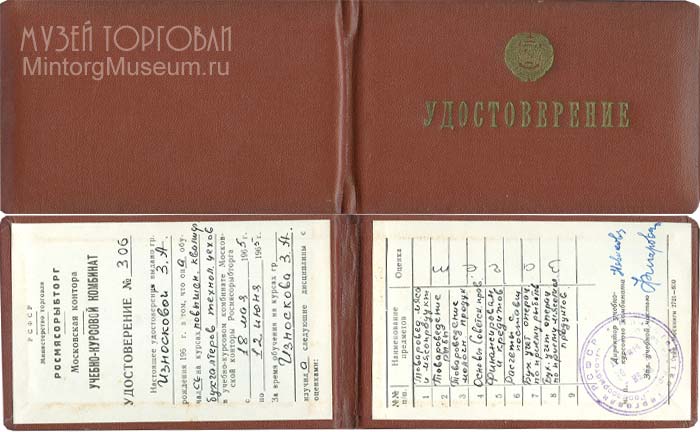 Московская контора Учебно-курсовой комбинат Министерство торговли РСФСР