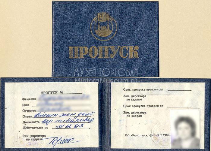 Удостоверение сотрудника ГУМ, 1993 год