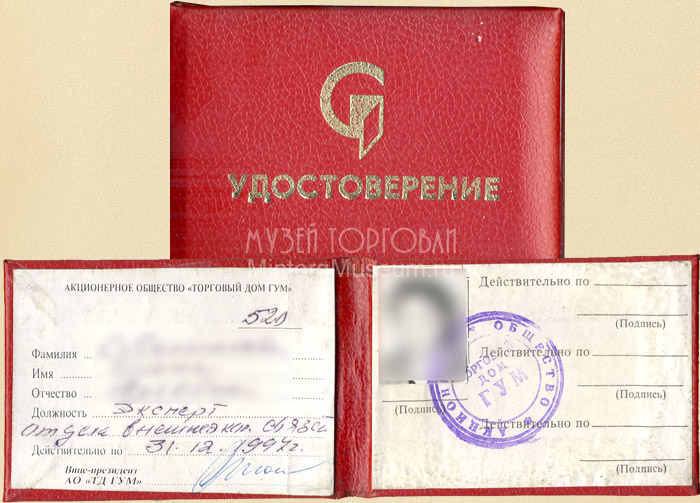 Удостоверение сотрудника ГУМ, 1997 год