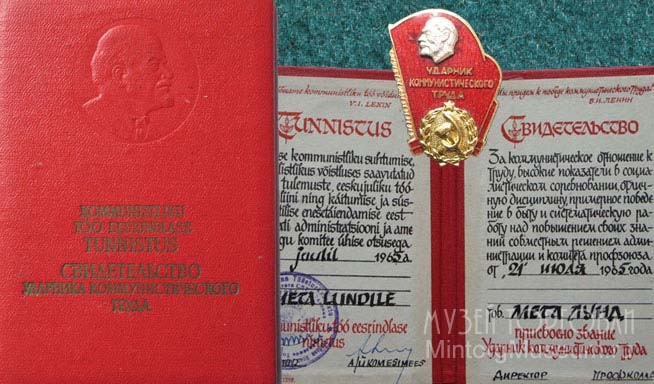 Свидетельство (Удостоверение) Ударника коммунистического труда, 1965 год