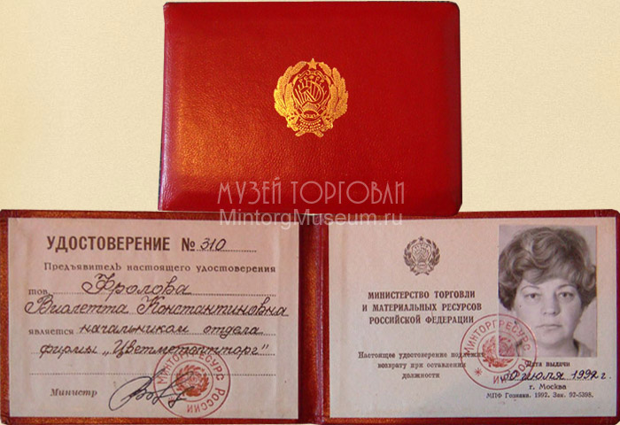Цветметоптторг Министерство торговли и материальных ресурсов Российской Федерации, 1992 год