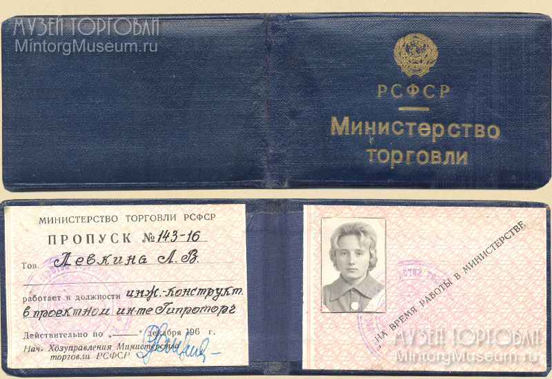 Министерство торговли РСФСР Пропуск, 1960-е годы