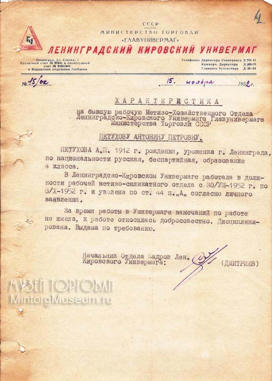 Ленинградский Кировский Универмаг (КУ) "Главунивермага" Министерства торговли СССР 1952 год