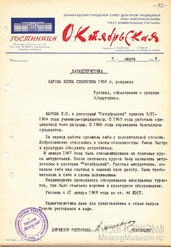 Гостиница "Октябрьская" Ленинград, 1969 год