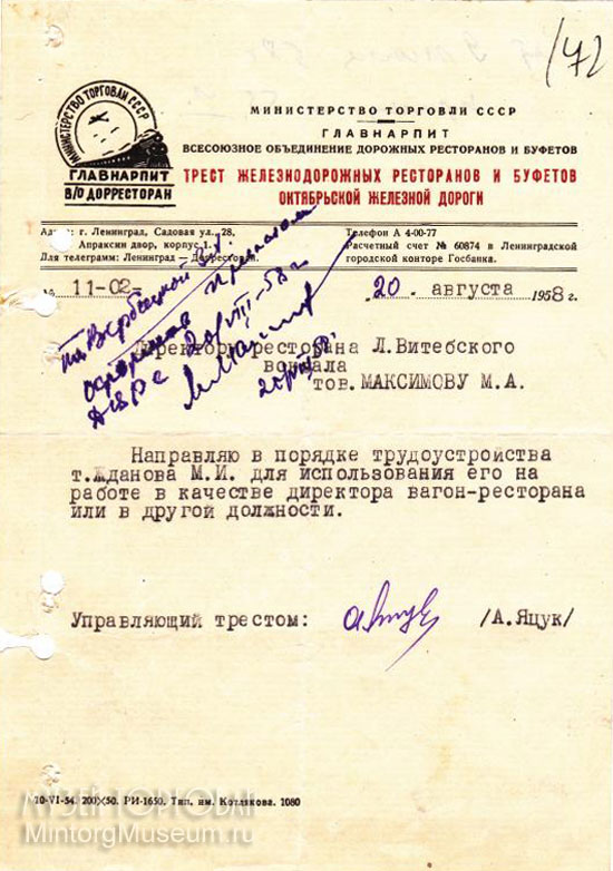Бланк Дорресторан Ленинград