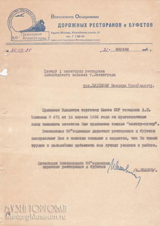 В/О Дорресторан, 1954 год
