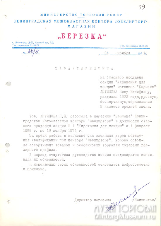 Магазин "Берёзка", 1971 год