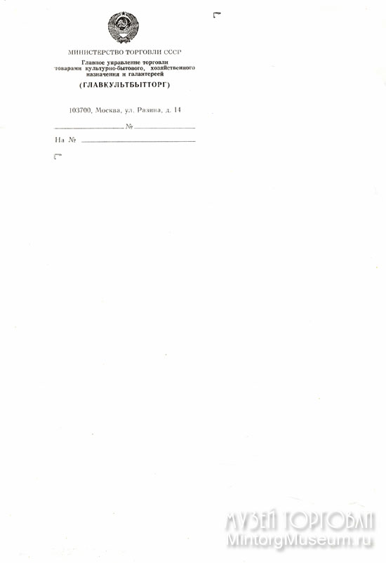 Министерство торговли СССР (103700 г. Москва, улица Разина, 14)