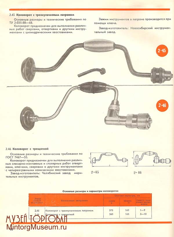 В каталоге представлены краткие сведения о хозяйственных металлообрабатывающих инструментах, выпускавшихся предприятиями Минстанкопрома по планам товаров культурно-бытового назначения и хозяйственного обиход, а также изготовлявшихся по планам основного производства и поступавших в розничную торговую сеть