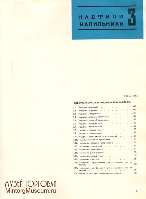 В каталоге представлены краткие сведения о хозяйственных металлообрабатывающих инструментах, выпускавшихся предприятиями Минстанкопрома по планам товаров культурно-бытового назначения и хозяйственного обиход, а также изготовлявшихся по планам основного производства и поступавших в розничную торговую сеть