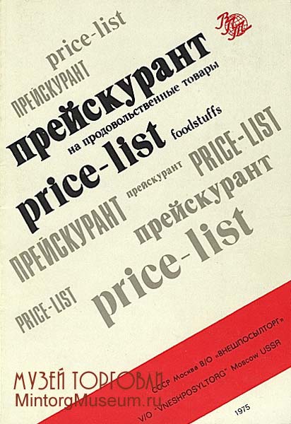 Прейскурант на продовольственные товары, магазин "Берёзка", В/о "Внешпосылторг" СССР 1975 года