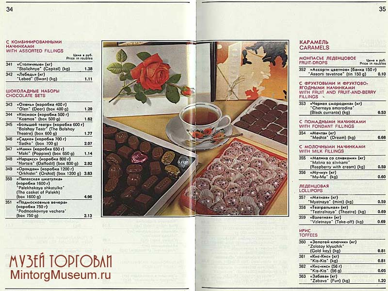 Прейскурант на продовольственные товары, магазин "Берёзка", В/о "Внешпосылторг" СССР 1975 года