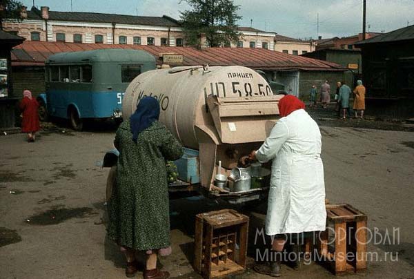 Торговля молоком с автоцистерны-прицепа. Иркутск, 1966 год.
