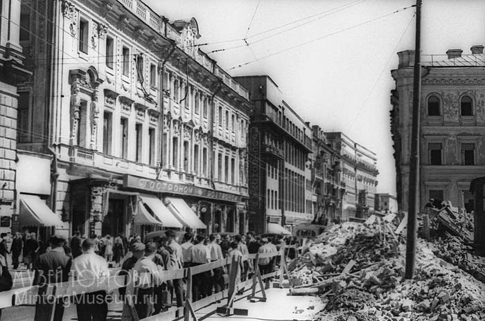 Гастроном №1. Москва, ул. Горького в период расширения проезжей части.