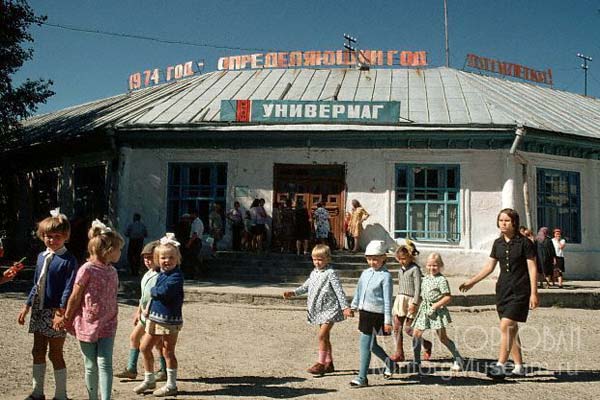 Вывеска "УНИВЕРМАГ" выполнена из крашеного металлического листа, закреплённого на подрамнике.