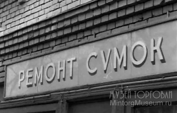 Вывеска "Ремонт сумок" Не совсем понятно по изображению, но подобные вывески чаще делали на основании деревянного каркаса, внутрь которого ставили раскрашенное со стороны, обращённой к зданию, стекло. Это позволяло мыть его, без боязни отчистить краску. Однако, погодные условия делали это регулярно. Окрашивали стекло чаще в чёрный, тёмно-бордовый, тёмно-красный цвета, а буквы делали белыми или жёлтыми. Крепились такие вывески путём привинчивания шурупами к заранее размещённым деревянным пробкам. |