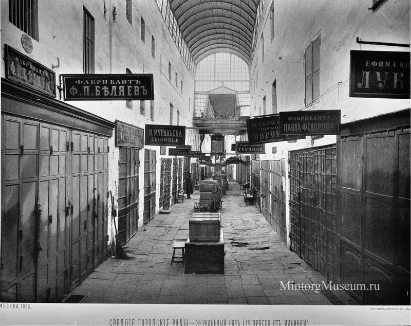 Средние торговые (городские) ряды. Зеркальный ряд. Первый ряд от Ильинки. 1886 год