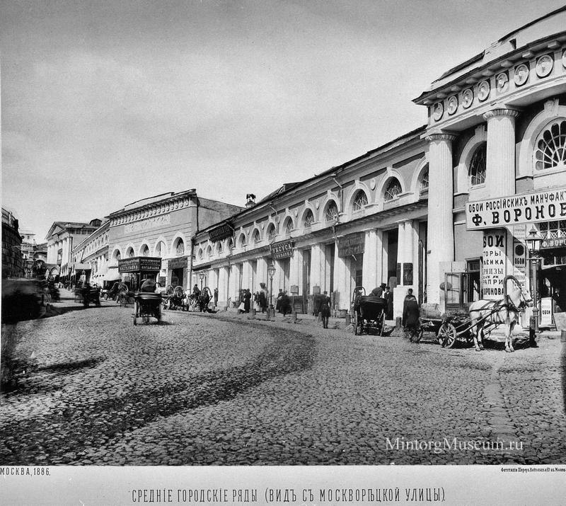 Средние торговые (городские) ряды, вид с Москворецкой улицы, 1886 год.