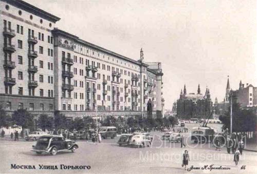 Гастроном на ул. Горького, 1952 год (там же и "Аптека" и "Мосторг")