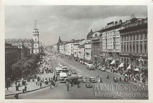 Магазин "Пассаж" г. Ленинград, 1952 год (здание с белыми маркизами в правом углу изображения)