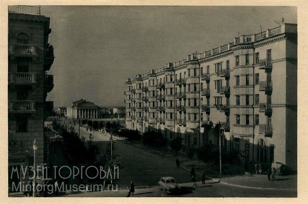Книжный магазин (здание справа) г. Сталинград, ул. Мира
