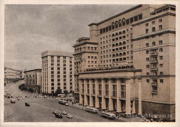 Гостиница "Москва". Кафе Не частый ракурс с видом на улицу Горького. Много привычнее видеть было гостиницу с другой стороны. |