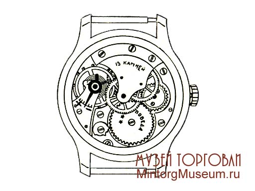 «Луч» — на 18 камнях, продолжительность действия от одной полной заводки 32 часа, с боковой секундной стрелкой;