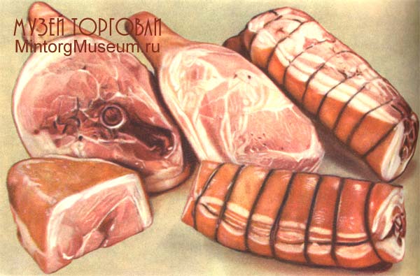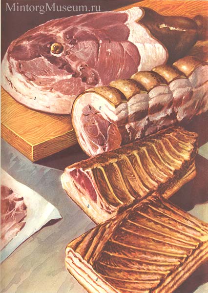 1 - окорок московский; 2 - рулет ленинградский; 3 - корейка свиная; 4 - грудинка свиная