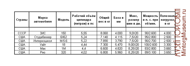 Сравнительные характеристика ЗИС-150 и автомобилей США соответствующего периода