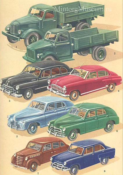 Автомобили. Писать об автомобилях при существовании потрясающих книг и статей Льва Михайловича Шугурова (22 марта 1934 — 16 октября 2009) мы не станем, т.к. это будет простое переписывание его работ. Остановимся только на вопросе торговле автомобилями в СССР пятидесятых годов. При этом поговорим только о торговле через автомагазины, а не о комиссионной торговли и т.п. как легковыми, так и грузовыми автомобилями.