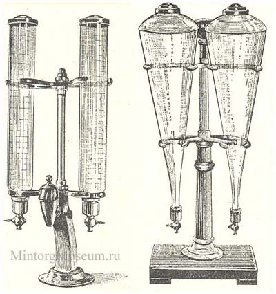 Колонка для газированной воды с сиропом (слева) и колонка для продажи соков