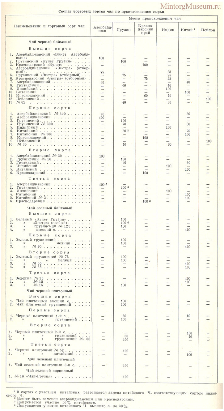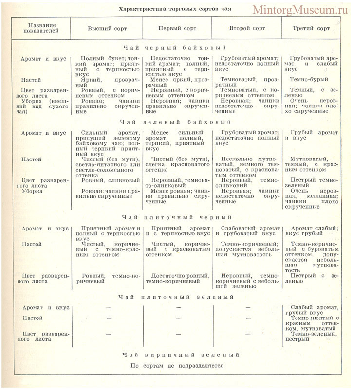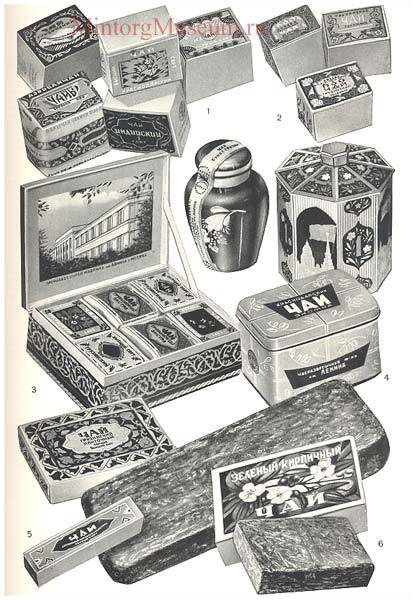 1 - чай байховый; 2 - зелёный; 3 - ассорти в оригинальной упаковке; 4 - в различных чайницах; 5 - плиточный чёрный; 6 - кирпичный зелёный
