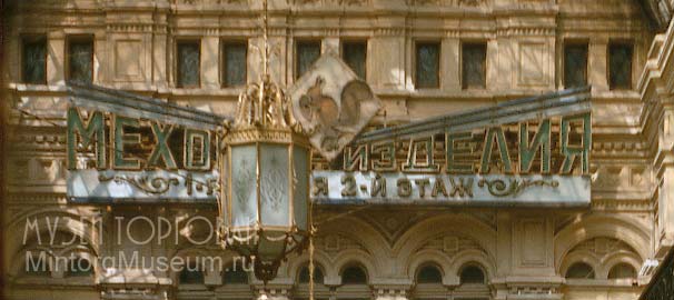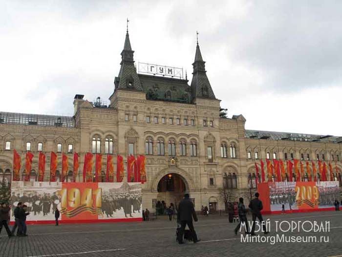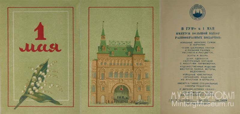 Открытки, посвящённые ГУМу и нагрудные знаки сотрудников магазина можно увидеть в соответствующих разделах нашего музея.