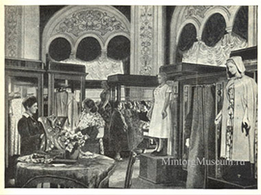 Организация торговли в салонах значительно отличалась от обычных методов обслуживания покупателей. Первое отличие состояло в том, что показ товаров в салонах организован шире и нагляднее, чем обычно: в застекленных шкафах-витринах выставлялись все образцы изделий, имевшиеся в продаже, и покупатель, подходя к ним, легко и быстро знакомился со всем имевшимся в продаже ассортиментом. Второй особенностью организации торговли в салонах являлся подбор специального ассортимента товаров, например: в салоне платьев продавались только платья из натурального шёлка, в салоне женских головных уборов — изящные и оригинальные модельные шляпы, в салоне мехов — только меховые манто из норки, каракуля, белки и т. д. Третьей отличительной особенностью салонов являлось оказание покупателям различных дополнительных услуг, например: в салоне шёлковых тканей к услугам покупателей имелись журналы мод, продавались фотокарточки отдельных моделей, специальный консультант помогал выбрать модель платья к купленной ткани и мог тут же сделать зарисовку модели на листке бумаги и т. д.